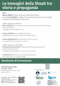 Le immagini della Shoah non sono solo testimonianze: raccontano, influenzano, educano. Il seminario di formazione Le immagini della Shoah tra storia e propaganda propone un percorso di riflessione sul ruolo delle immagini nella costruzione del linguaggio dell’odio e nella memoria della persecuzione. Attraverso interventi e attività laboratoriali, si indagheranno le rappresentazioni dell’odio, la propaganda antiebraica e il ruolo dell’immagine nella costruzione della storia e memoria della Shoah.